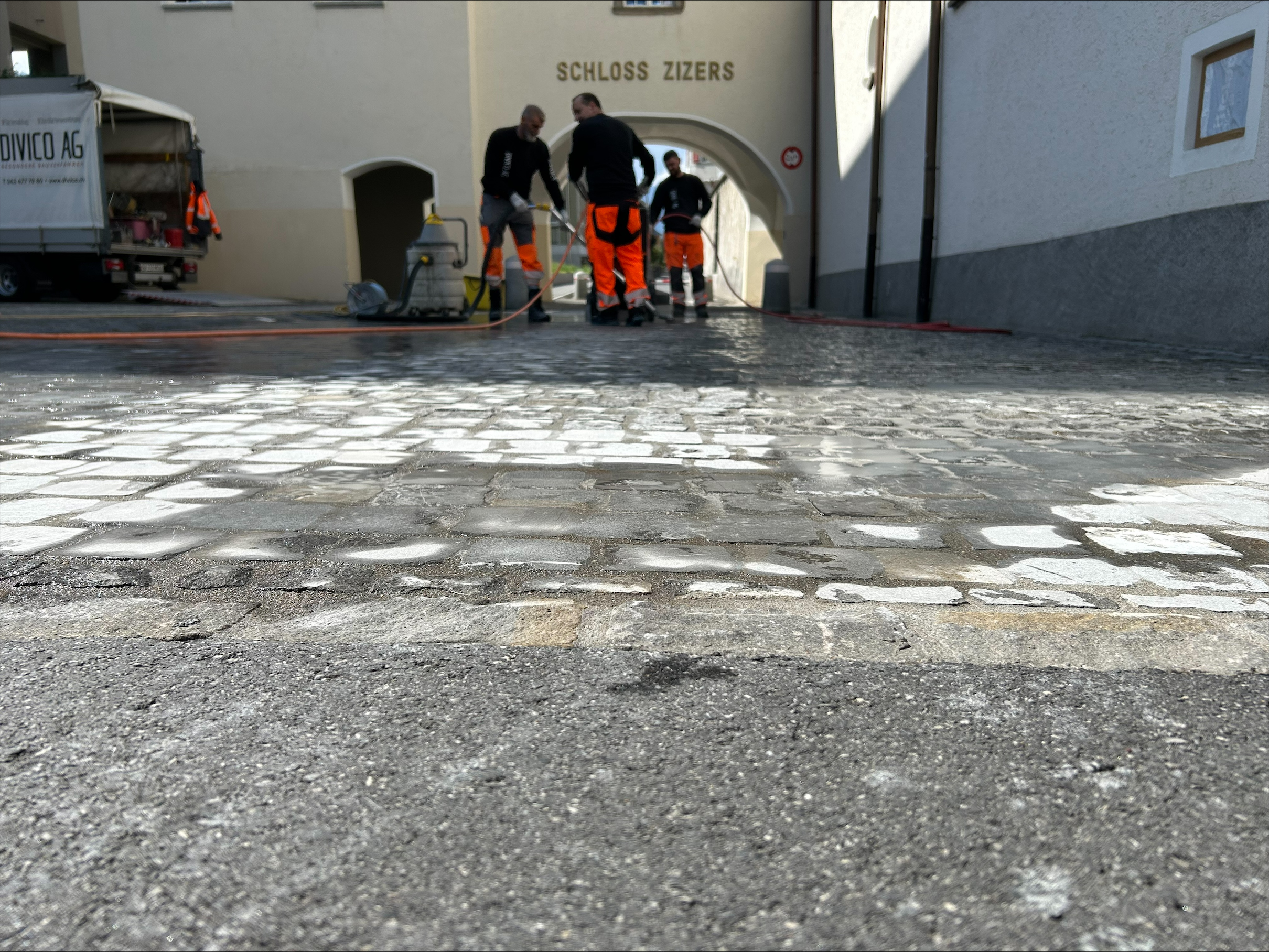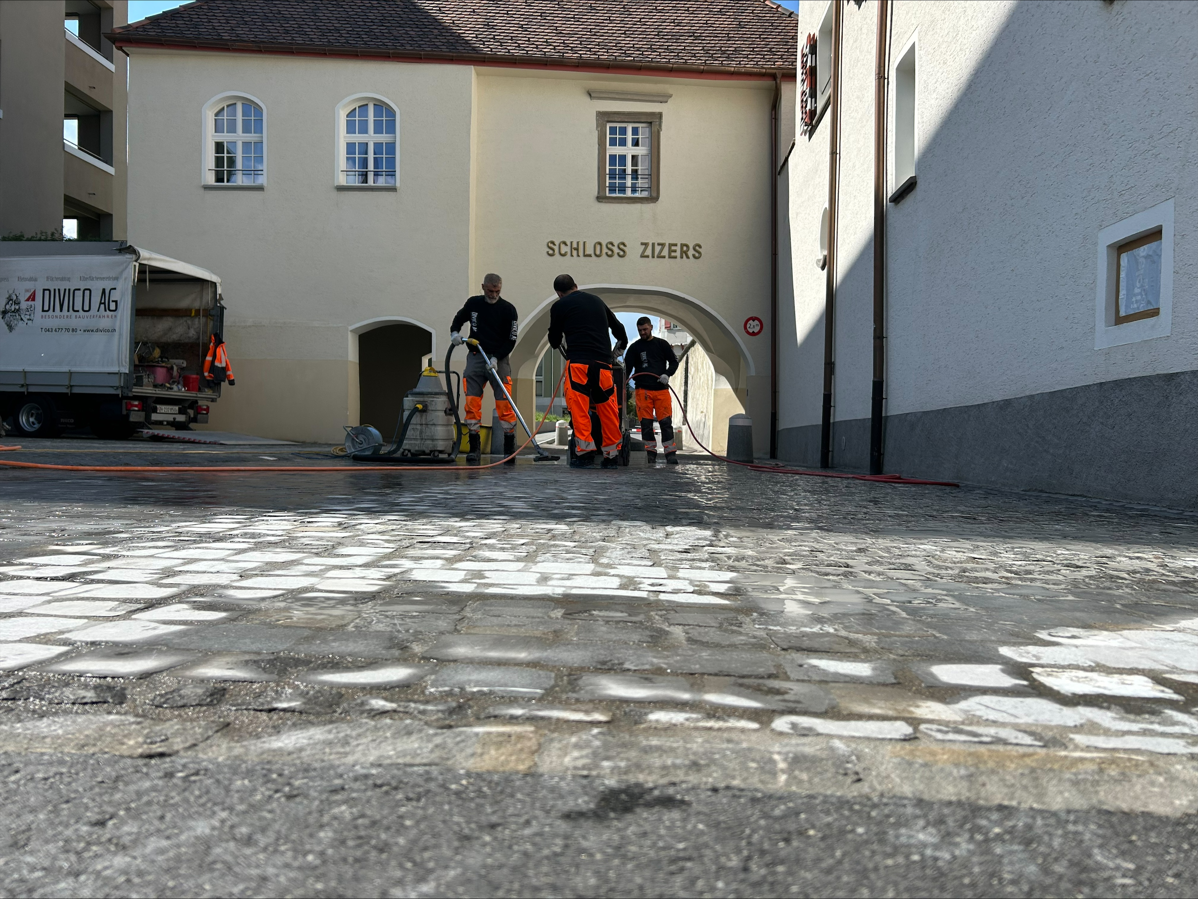 Damit die Lärmemissionen bei der Pflästerung der Vialstrasse minimiert werden können, wird die Pflästerung im Bereich des Torbogens vom 20. bis 24. April 2026 abgeschliffen.