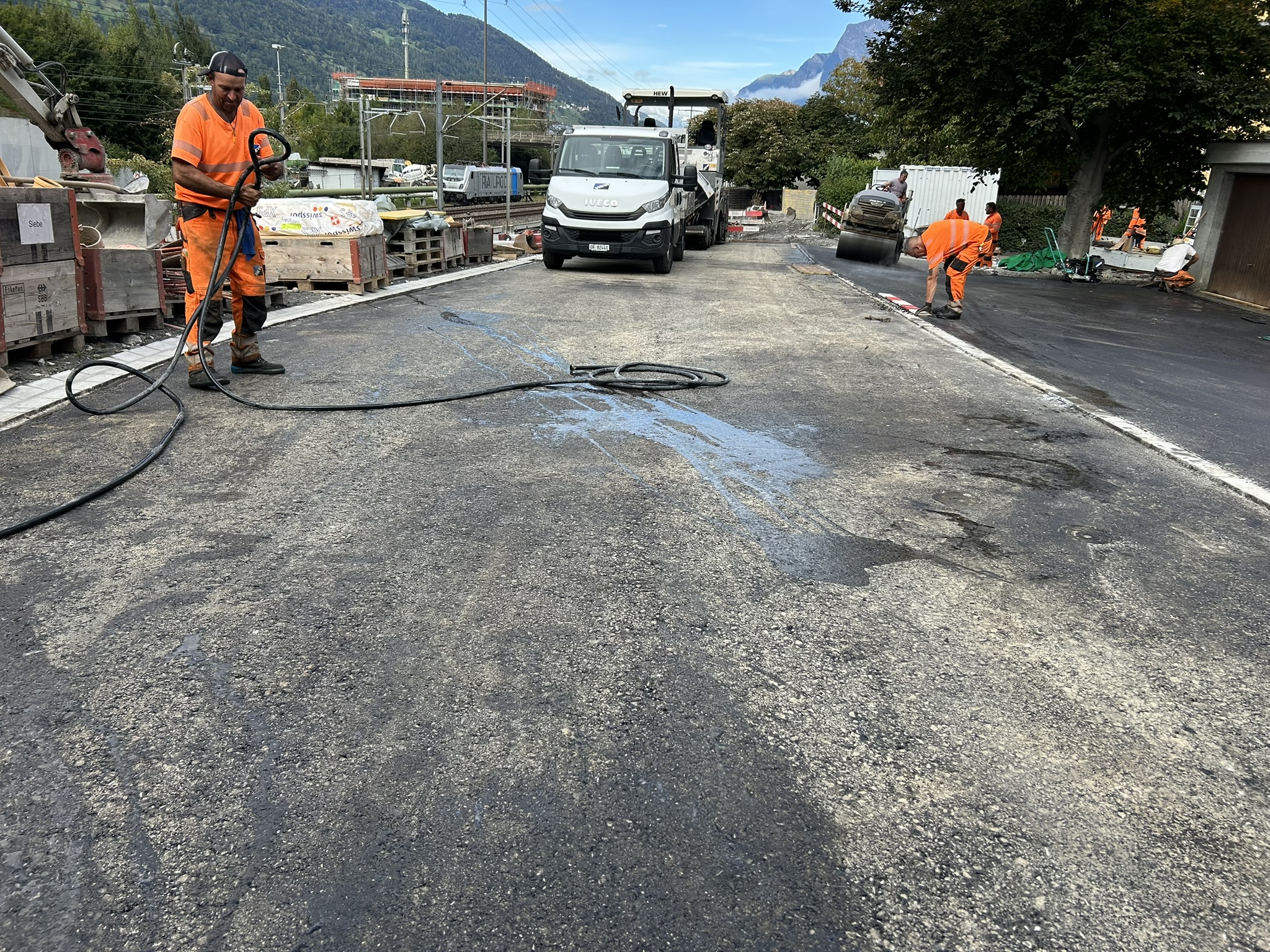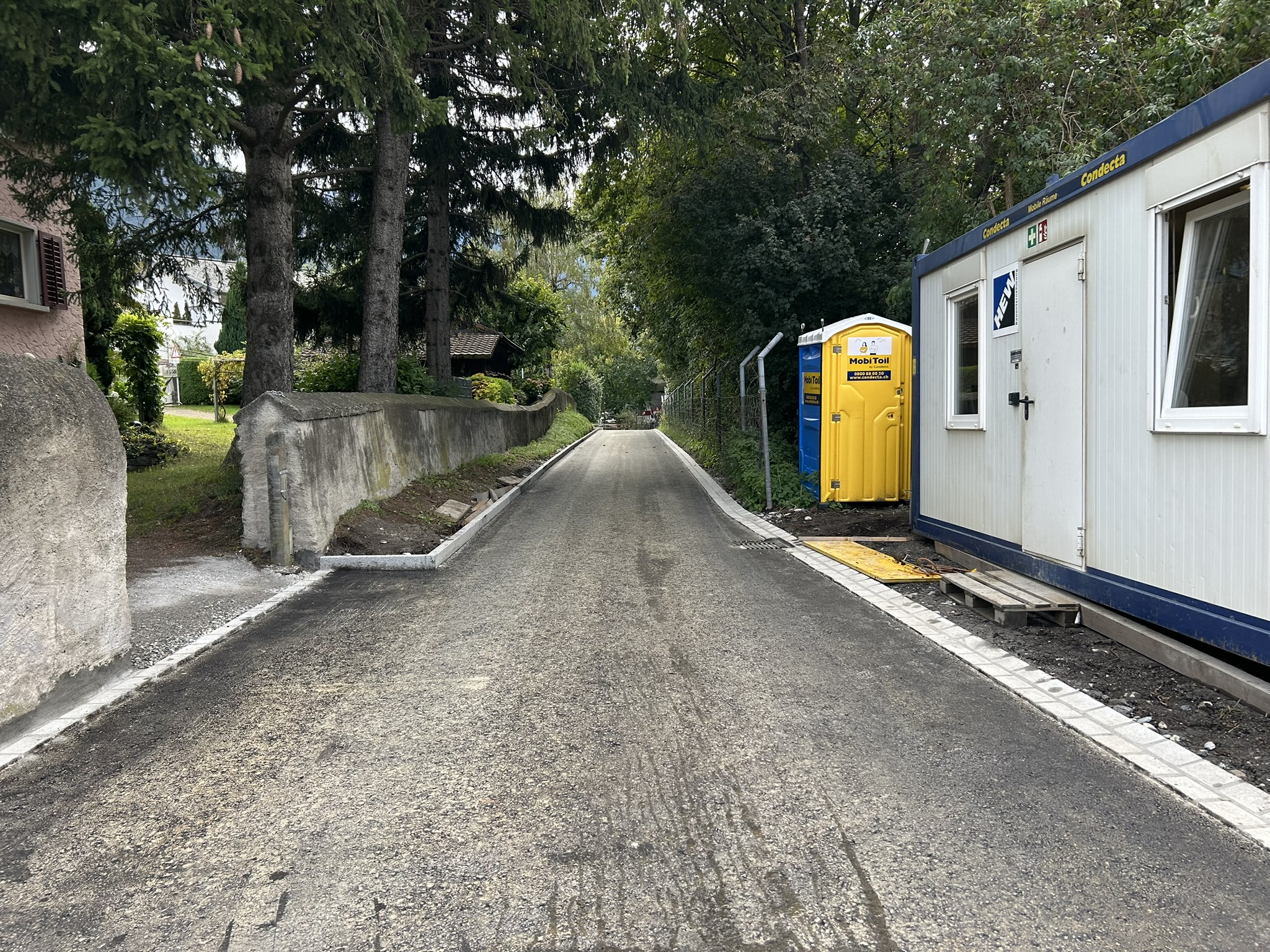 Einblicke bezüglich Belagsarbeiten der 1. und 2. Etappe der Verbindungspunkte Pfaffengässli – Calandastrasse inkl. Einblick in den Kanalisationsschacht.