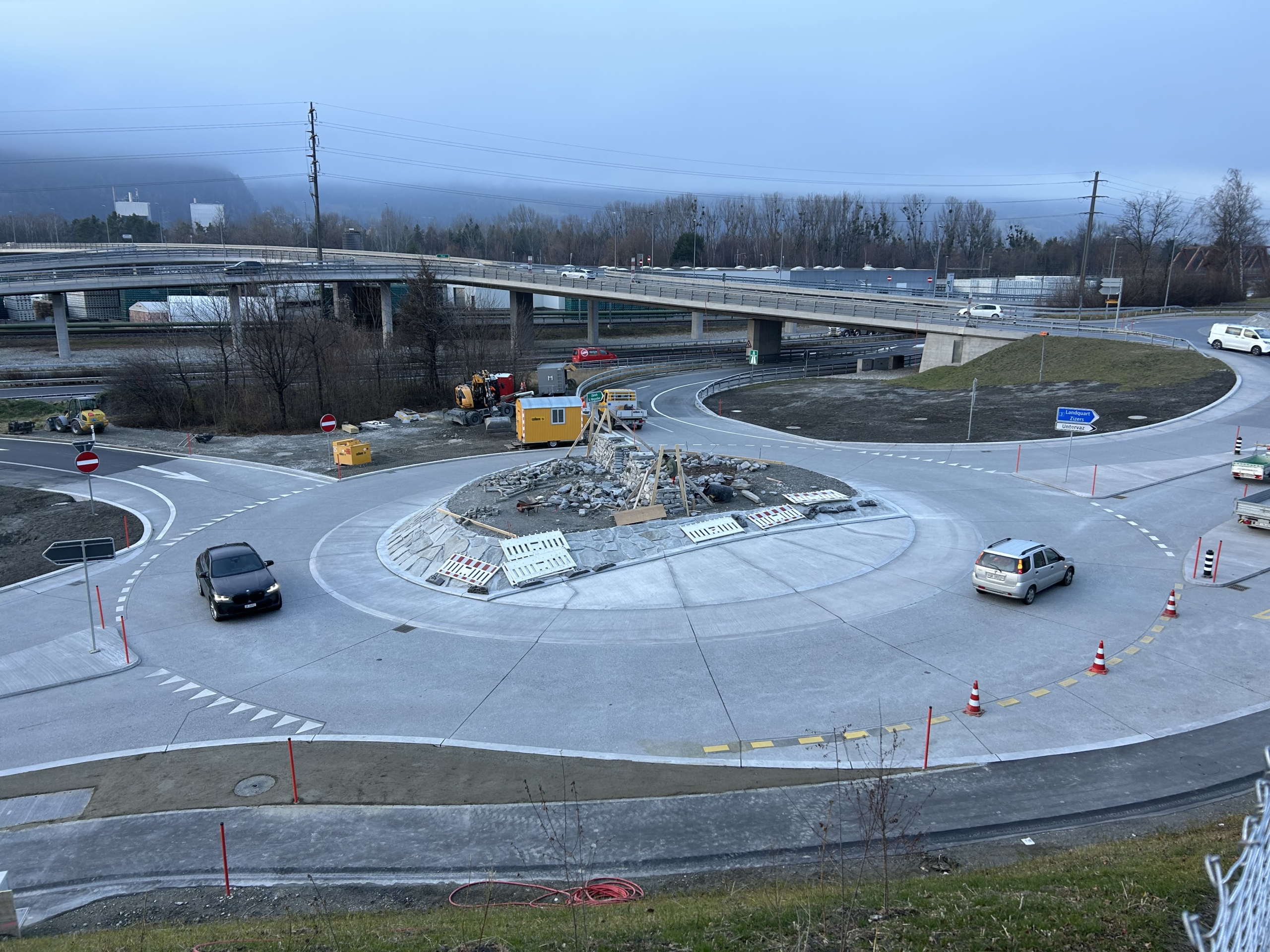 Die Giraffe, welche einst den Kreisel geschmückt hat, ist bereits seit dem Jahresbeginn aufgrund Bauarbeiten umgezogen. Die Bauarbeiten befinden sich im Endspurt. Die neue Kreiselgestaltung, wird durch die Firma SteinZeit Flütsch GmbH aus Zizers ausgeführt.